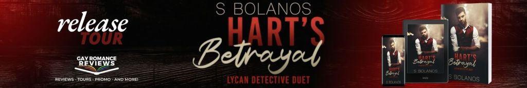 #GayRomanceReviews #GRR #GRRTours #ReleaseTour #SBolanos #HartsBetrayal #ShifterRomance #EnemiesToLovers #FatedMates #werewolves #LoveWins #QueerLit #TBR #NewBooks #OutNow #KindleUnlimitedRomance